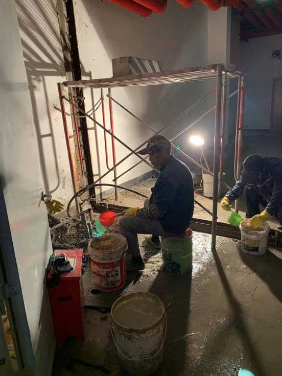 3、待发泡剂完全凝固后,用聚合物水泥防水砂浆掺堵漏材料抹3cm面,使其立面保持坚实、平整。